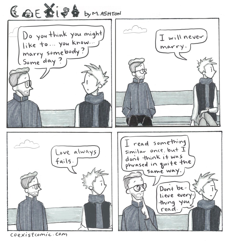- How did you discover blogging and why did you decide to start your own blog? I started a drawing blog quite a few years ago. I was a young mom, with little ones who needed lots of care. I had always loved to draw, and started a blog to connect with others, to have a creative outlet, and as a sort of artificial spur to keep creating. I’ve retired that blog, and now just work on this one (I also post Coexist on Instagram).